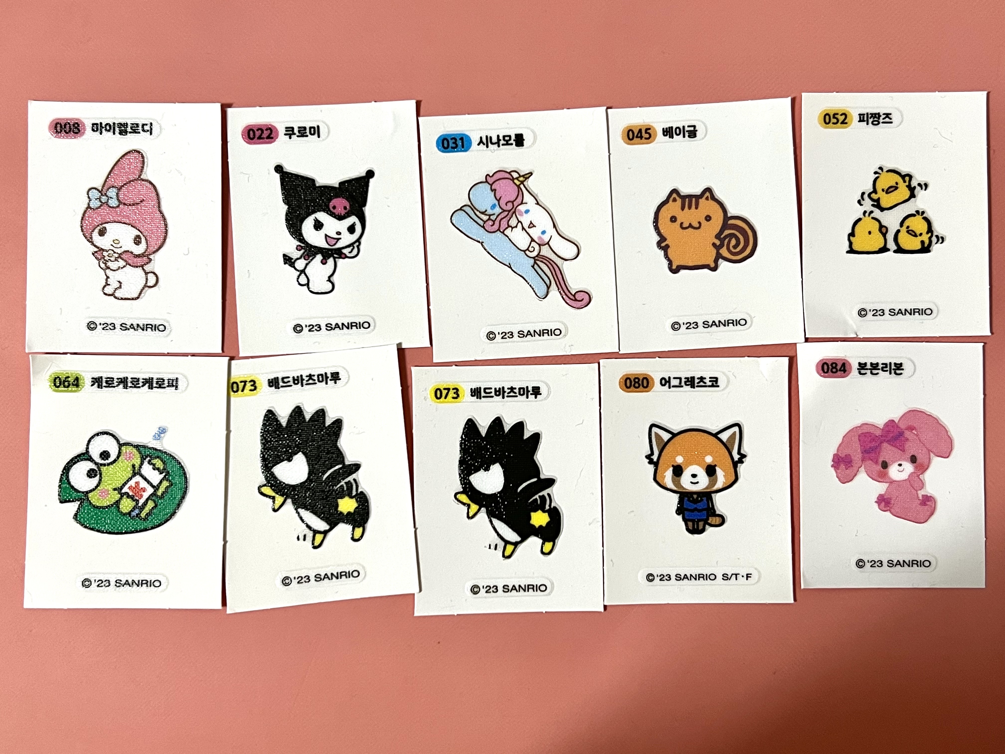 마지막으로 제가 모은 산리오 띠부씰을 소개합니다ㅎㅎ 사실은 이번 빵 구매 이후에는 눈 앞에 산리오빵이 보여도 안사게 됐어요... 빵 먹는 게 너무 힘들어서ㅋㅋㅋㅋㅋ더 이상 못사겠더라구요.. 그래서 아직 산리오 띠부씰은 10개밖에 없답니다. 심지어 배드바츠마루는 똑같은 걸로 두개..ㅋㅋㅋ;