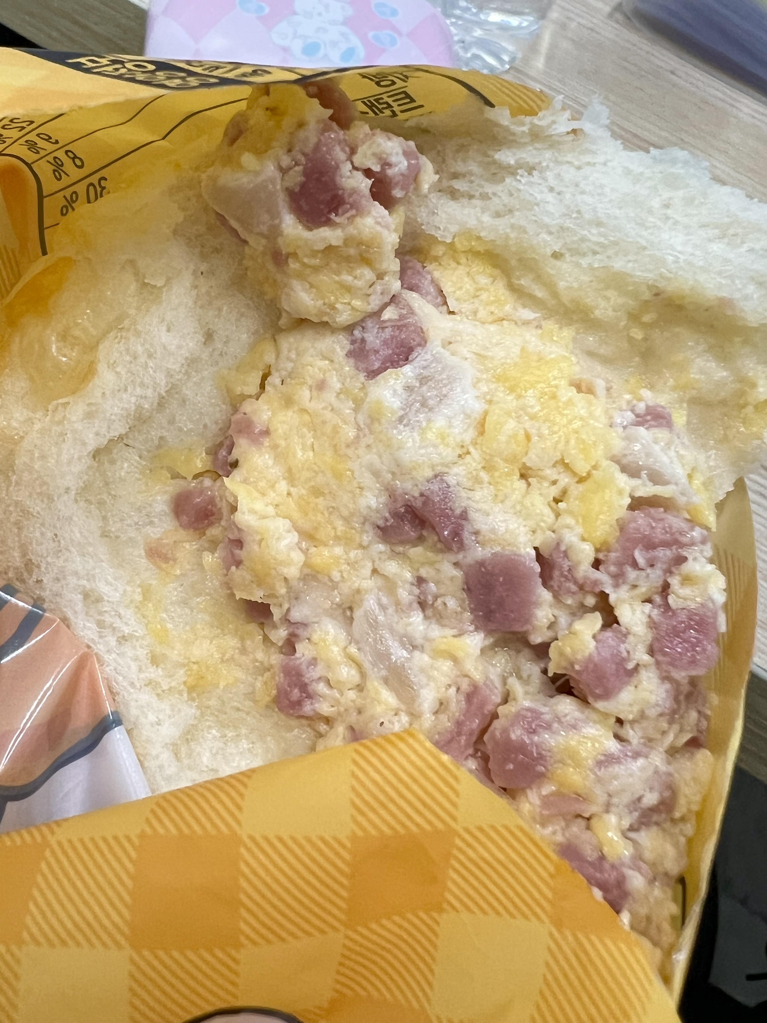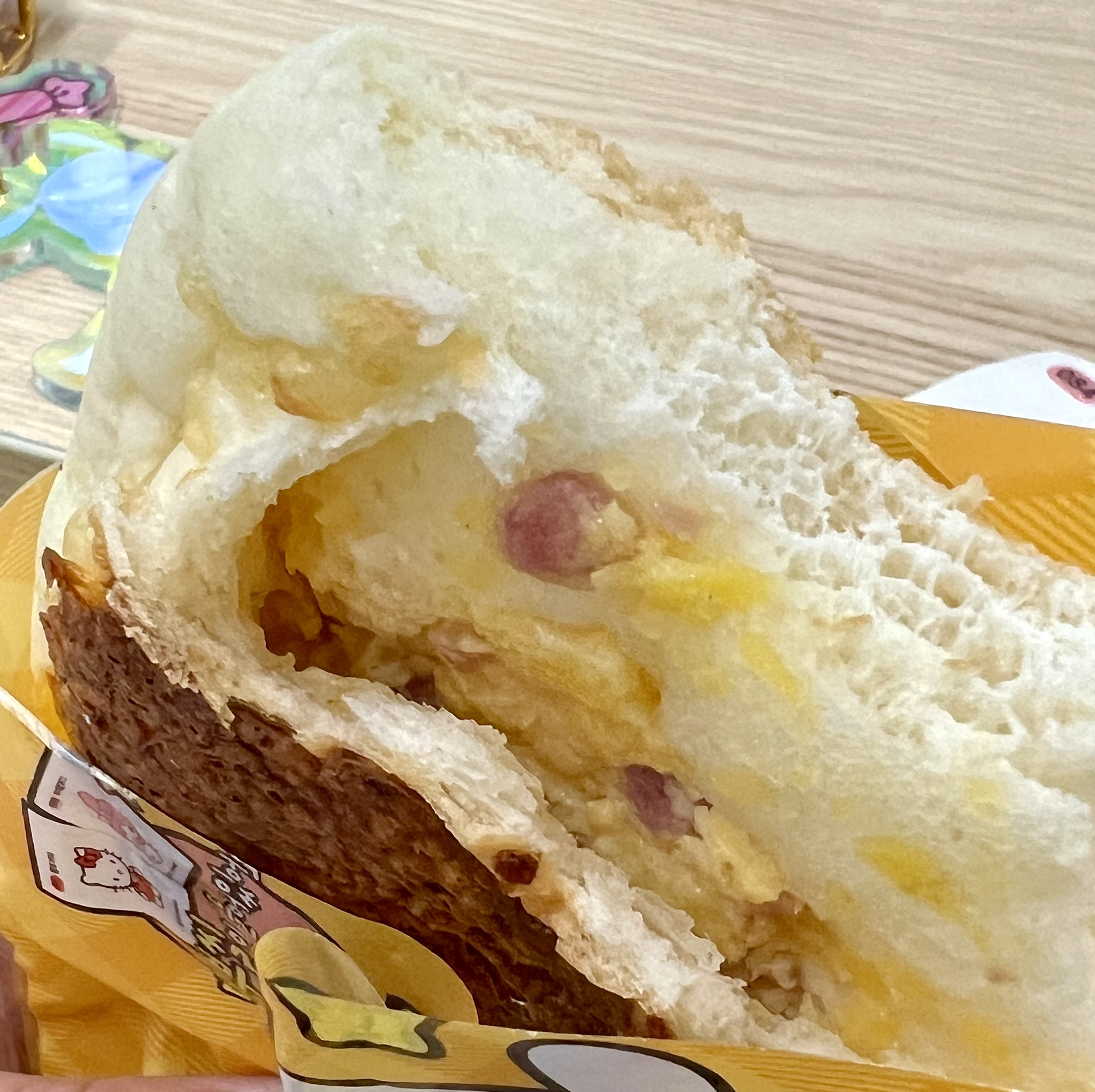 궁금해서 구데타마 햄에그브레드 속을 까봤습니다 ㅎ 밖에서 급하게 먹느라 위에 다른 빵들처럼 예쁘게 플레이팅도 커팅도 못하고 마구 찍어서 비주얼이 조금 그렇네요 ㅋㅋ 근데 지금까지 먹어본 산리오빵 중에 구데타마 햄에그브레드가 그나마 가장 맛있었던 것 같아요! 만약 구매하셨다면 꼭 살짝 데워드세요 ~