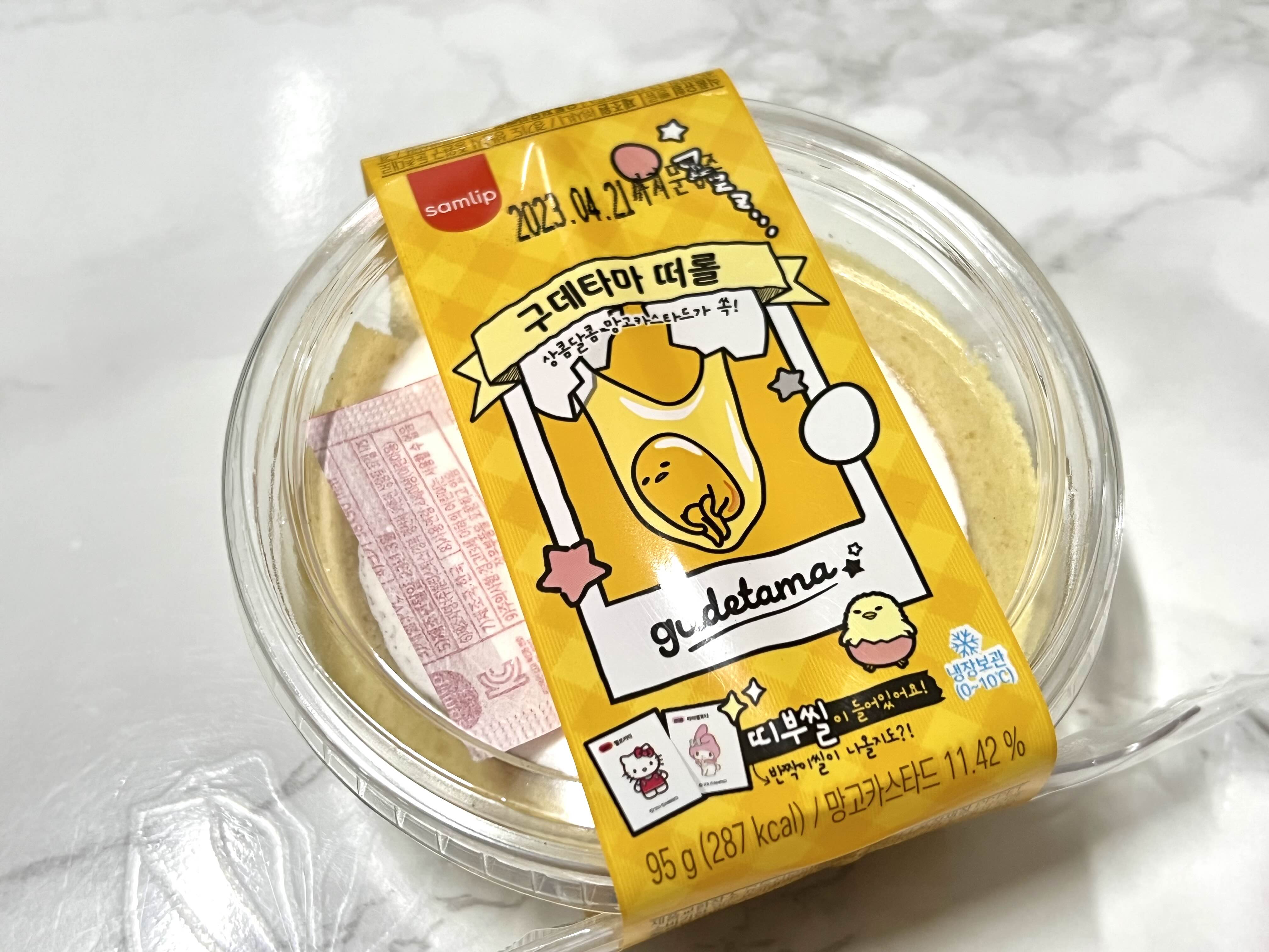 구데타마 캐릭터 포인트를 너무 잘 살린 떠롤 ㅋㅋㅋ 넘 귀엽지 않나요 ㅎㅎ 구데타마 떠롤 노른자는 사실 망고 크림이랍니다! 카스타드 롤 안에 생크림과 망고 크림이 담겨있습니다