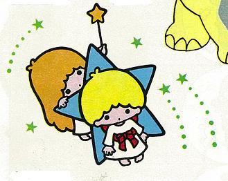 다시 리틀트윈스타의 얘기로 돌아오면, 이때까지만 해도 리틀트윈스타라는 명칭이 정해지지 않아서 '별의 아이 차머' 라고 불렸다고 해요. 아래 그림을 보면 머리과 별의 색 등이 지금과는 확연히 다르죠. 이후 딸기 신문에서 이름 모집을 받게 되었고, 각각 키키와 라라라는 이름을 가지게 되었습니다. 키키와 라라를 합치면 '키라키라 キラキラ (반짝반짝) ' 라는 말이 된답니다.